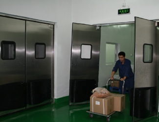 自由防撞门四周有橡胶密封条,具备防虫,隔尘,隔风,隔异味的功能,从而达到提高环境卫生的功效。自由防撞门全防锈防水处理,便于频繁清洗,满足高品质要求的环境。