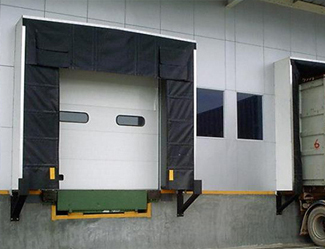 侧翼板为双层聚酯单纤维弹性强度织物,双面PVC涂层,厚度约3mm。 侧翼两边各有白色或黄色引导条。 顶部帘板为双层聚酯多纤维高强度织物,双面PVC涂层,厚度约3mm。 顶部和侧部密封帘板为聚酯纤维弹性强度织物,双面PVC涂层。 边框采用铰链式连接臂。 门封三侧装有前架、后架及连接臂,均为镀锌钢质材料, 帘布的固定,通过可用螺栓连接的铝合金型材,表面为铝本色,经阳极化处理。
